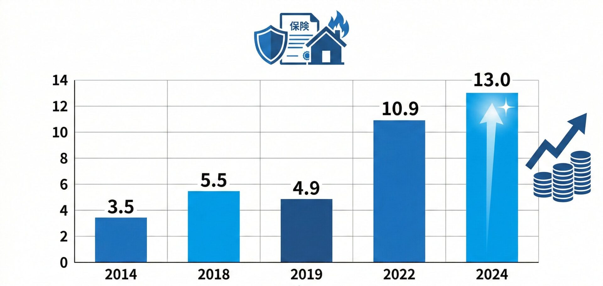 これは直近10年間で最大の引き上げ幅で、2024年10月から各保険会社で保険料の改定が実施されています。