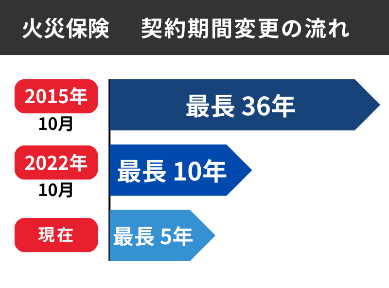 なお、2022年10月の制度改定で、火災保険の最長契約期間が10年から5年に短縮されました。
