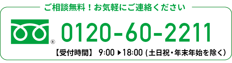 0120-60-2211 受付時間 / 9:00〜18:00(土日祝休)