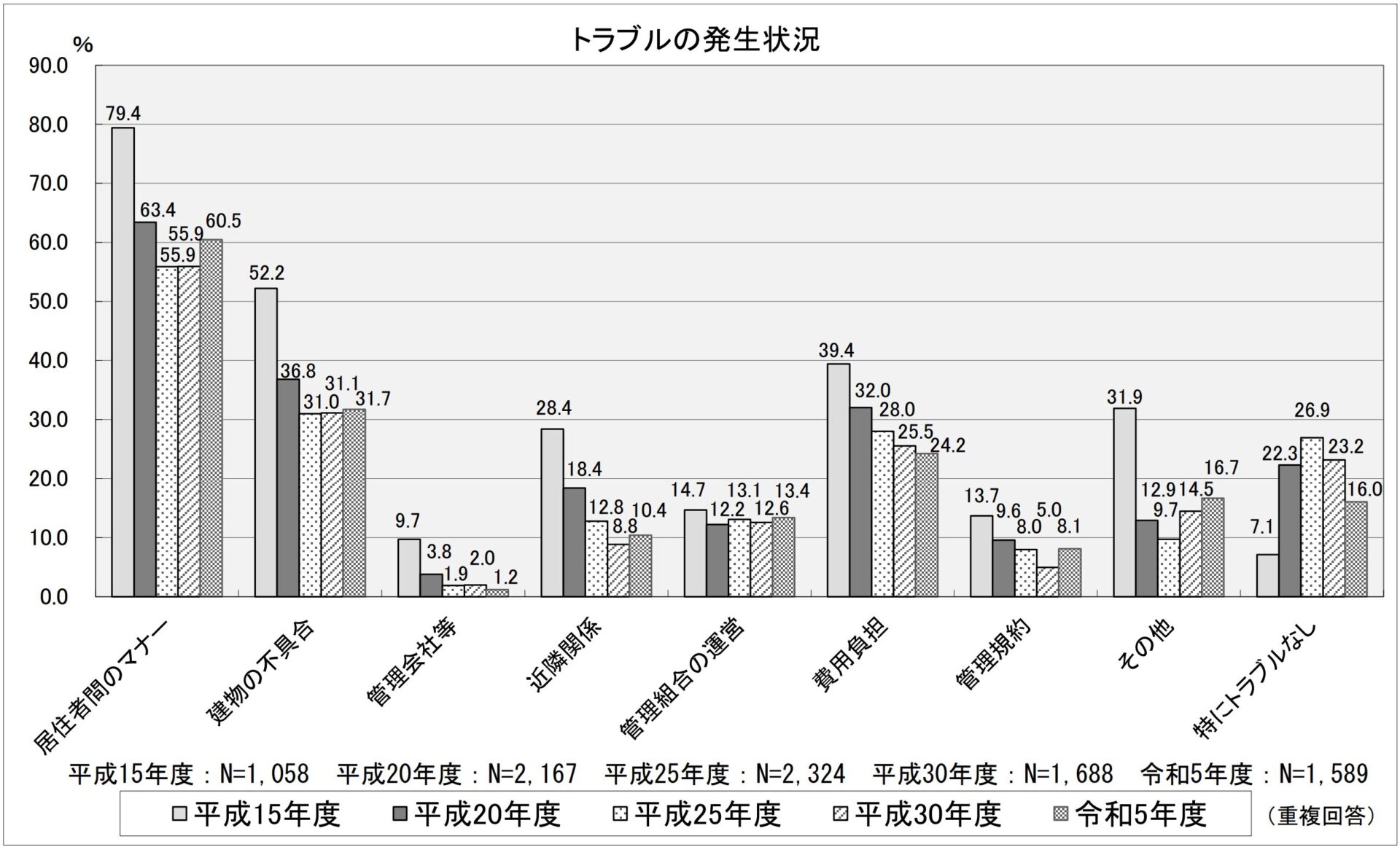 | 管理組合の全回答数 1,589 ※重複回答あり | トラブルの種類 | 回答数 (全回答数における%) |